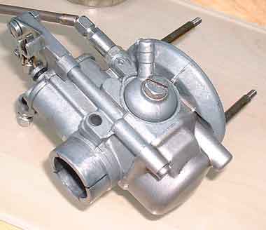 The complete carburettor (in this case a Dell'Orto SHB 19/19) and air filter assembly looks like this: