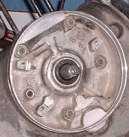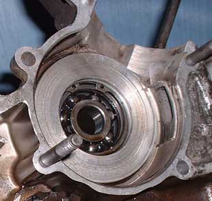 One that seals the crank from the clutch chamber, one that seals the mainshaft at the flywheel and one that seals the rear axle at the hub. Whenever you rebuild the engine you should always renew the seals. It's false economy not to, and when you take an engine apart you never know what state they will be in.The hub seal and the flywheel seal can actually both be replaced with the engine in the scooter as they can be accessed from the outside, but the clutch side seal can only be replaced with the engine split and the crank out of the scooter. When pressing a new seal into place it's important to make sure it goes in the right way and to make sure it goes in evenly. Here's where the clutch side one goes